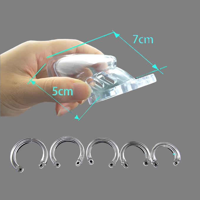 Material and Size of pink plastic chastity cage.